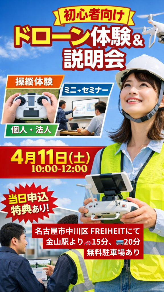 愛知県でドローンスクールを比較検討している方にとって、第一歩として参加しやすいイベントです。